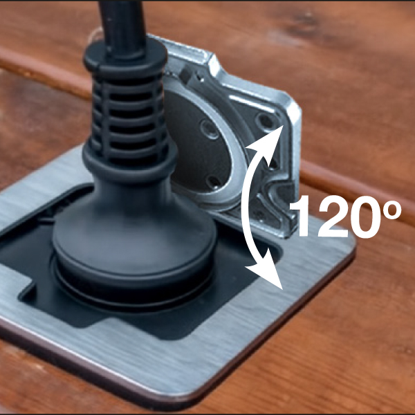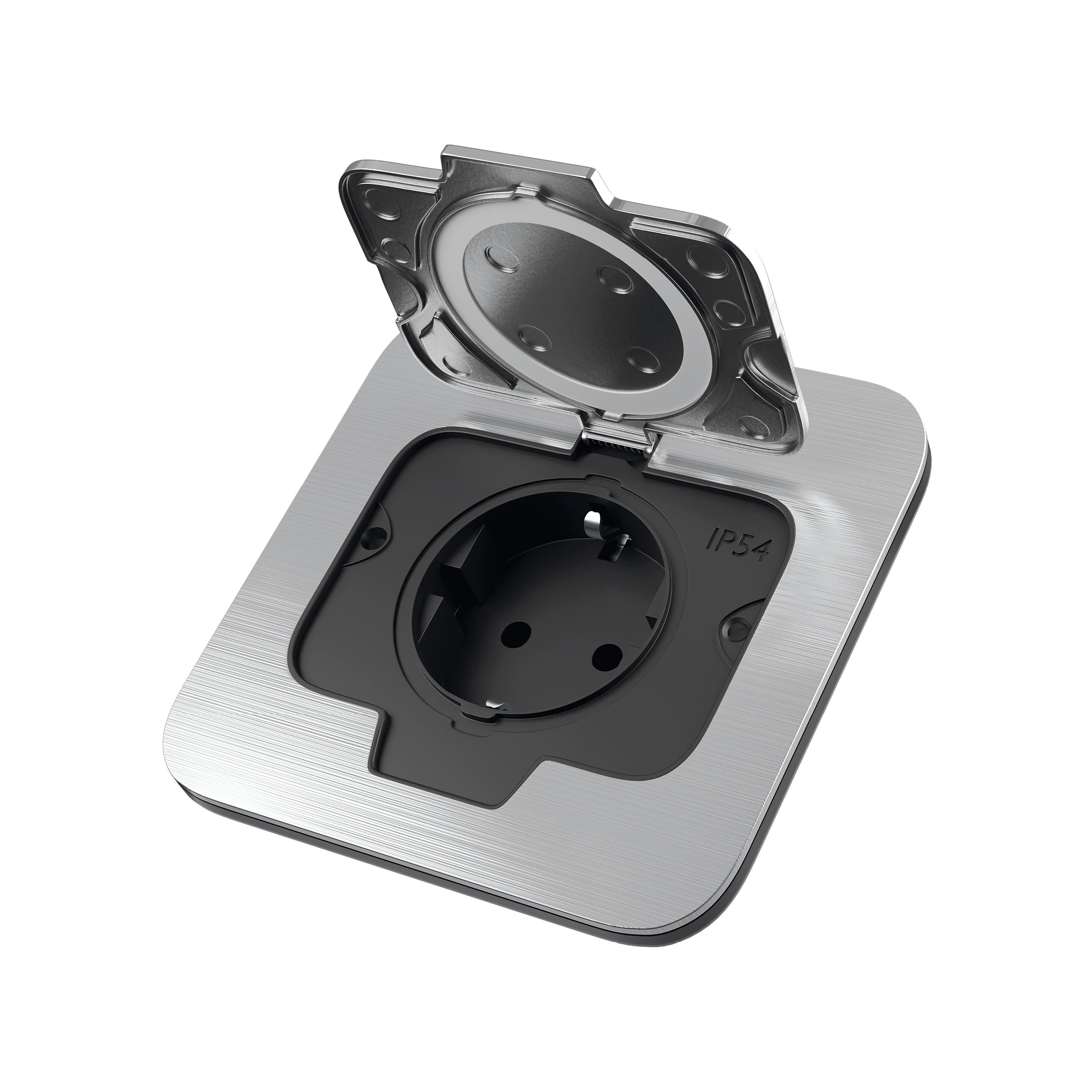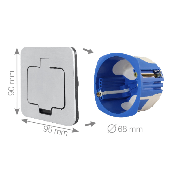 Moderna podna utičnica s poklopcem od brušenog aluminija pruža pouzdanu zaštitu od prašine i prskanja vode (IP54). Idealna je za terase, balkone, poslovne prostore i moderne eksterijere gdje su funkcionalnost i dizajn jednako važni. Direktno se ugrađuje u pod, a u zatvorenom položaju osigurava ravnu i sigurnu površinu.
